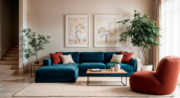 When I walk into a bare space, I imagine how it should feel. I’ll usually begin with a sofa in a neutral tone it grounds the room. From there, I add a pair of accent chairs. Maybe velvet in a jewel tone for drama, or rattan for something lighter and relaxed.